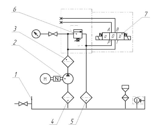 Гидравлическая станция служит для подачи масла с определенным давлением и скоростью, которое приводит в действие исполнительные механизмы с гидроцилиндрами. Маслостанции представляют собой технически сложные устройства, которые состоят из нескольких основных узлов. Рассмотрим подробнее типовую гирдавлическую схему этого вида оборудования.