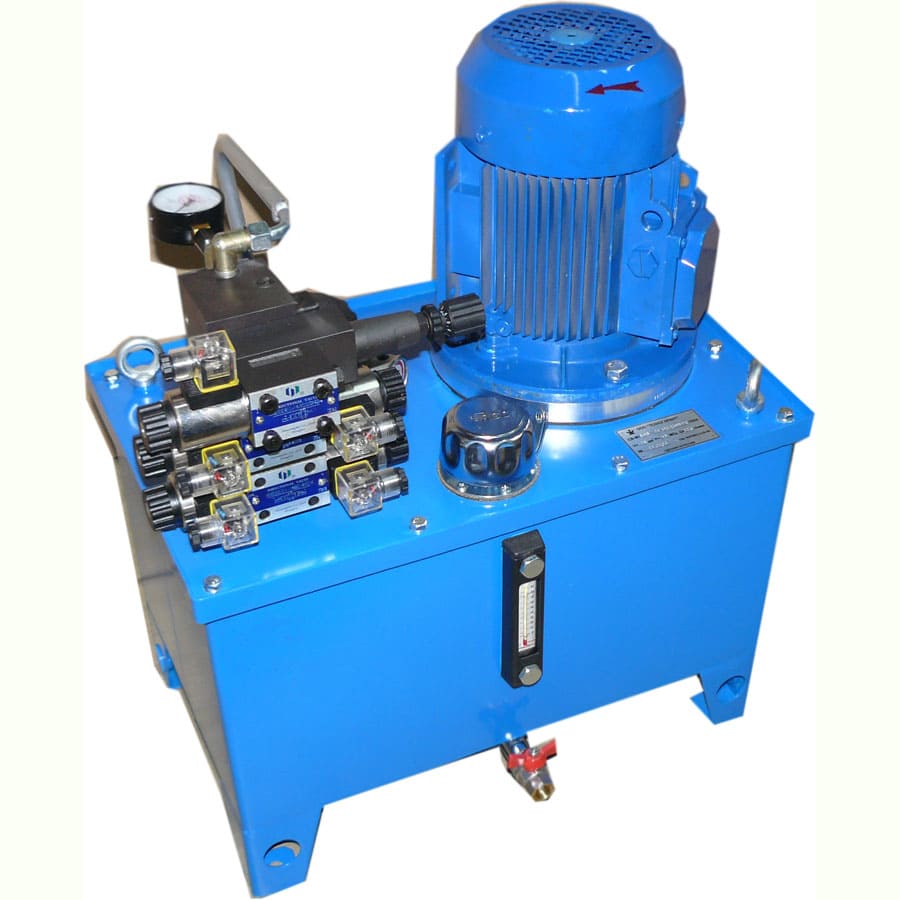 Гидростанция с гидравлическим цилиндром или несколькими цилиндрами – это комплект, состоящий из гидравлической насосной станции, рукавов высокого давления, элементов управления и распределения потока рабочей жидкости и исполнительного механизма с рабочим усилием до 200 тонн с ходом до 5 метров. Гидроцилиндр используется для совершения механической работы в виде прямолинейного перемещения нагрузки. Гидроцилиндр может создавать тяговое и толкающее усилие на штоке. Скорость перемещения штока определяется скоростью подачи гидростанции. Гидравлическая станция расчитана для подачи рабочей жидкости со скоростью от 1,6 до 50 л/мин, под давлением от 160 до 700 бар, емкость бака выбирается из диапазона от 10 до 250 литров в зависимости от объема и количества цилиндров.